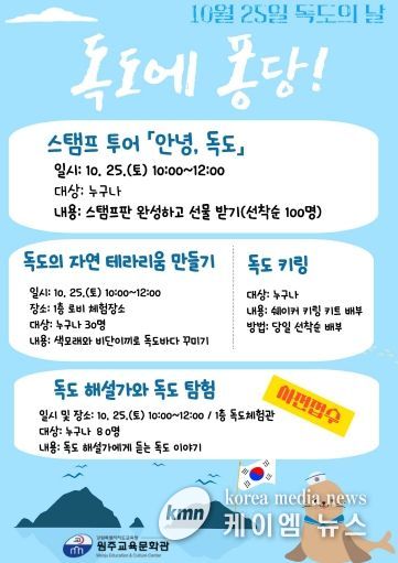 (케이엠뉴스) 원주교육문화관은 10월 25일 독도의 날을 맞아 ‘독도에 퐁당!’ 행사를 운영한다.