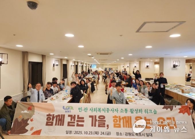 (케이엠뉴스) 남양주시는 10월 23일부터 24일까지 강원도 양양·속초 일대에서 ‘남양주시 민·관 사회복지종사자 소통활성화 워크숍’을 개최했다.