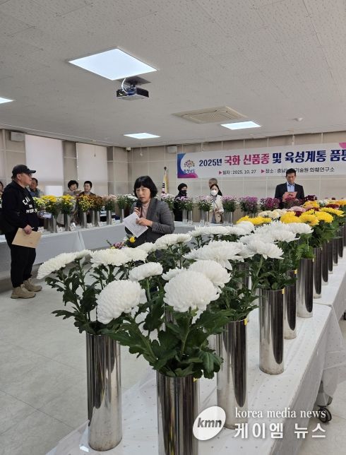 (케이엠뉴스) 충남도 농업기술원은 27일 기술원 내 화훼연구소 국화연구 온실에서 ‘충남산 국화 신품종 육성 계통 품평회’를 개최했다.