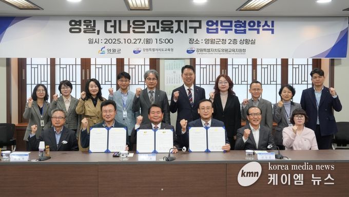 (케이엠뉴스) 강원특별자치도교육청은 영월군청(군수 최명서), 영월교육지원청과 10월 27일 영월군청에서 ‘영월 더나은교육지구 연장지정 업무협약’을 체결했다.