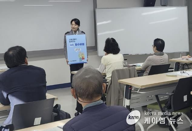(케이엠뉴스) 광명경찰서는 지난 27일 하안노인종합복지관을 찾아 어르신 교통사고 예방을 위한 ‘찾아가는 교통안전 교육’을 실시했다.