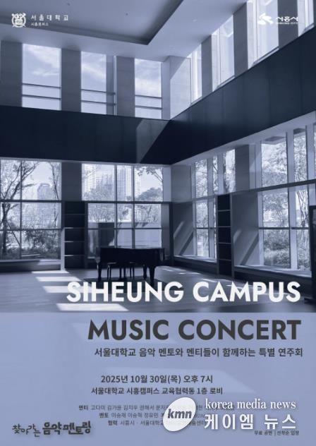 (케이엠뉴스) 서울대학교 시흥캠퍼스와 시흥시가 협력하는 ‘서울대학교 음악 멘토-멘티 특별 연주회’가 10월 30일 오후 7시, 서울대학교 시흥캠퍼스 교육협력동 1층 로비(시흥시 서울대학로 173)에서 열린다.