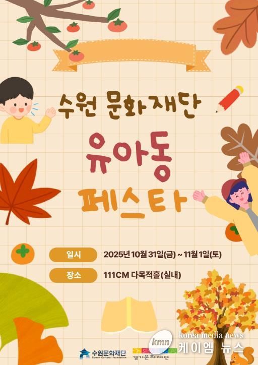 (케이엠뉴스) 수원문화재단은 오는 31일부터 11월 1일까지 복합문화공간 111CM에서 2025‘키득~ 키즈 아트 놀이터’유아동 예술교육 페스타를 개최한다.