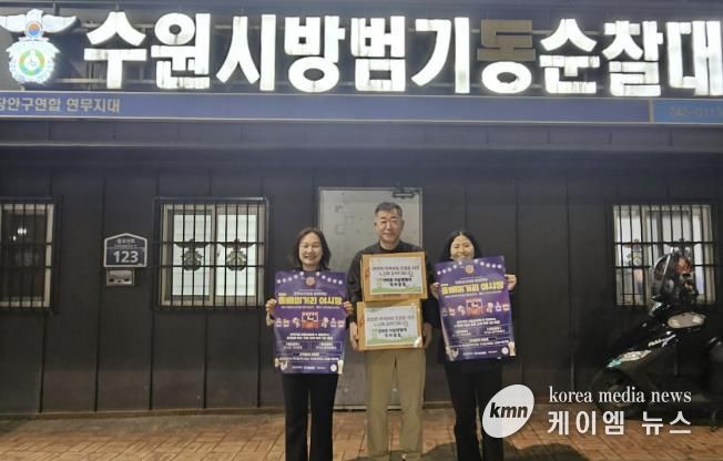(케이엠뉴스) 수원시 장안구 연무동은 지난 28일 연무동 자율방범대 초소를 방문하여 대원들의 노고를 격려하고 봉사에 대한 감사의 마음을 담은 격려 물품을 전달했다.