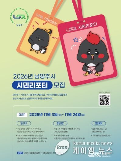 (케이엠뉴스) 남양주시는 2026년 시정소식지 제작에 직접 참여할 시민리포터 16명을 오는 11월 3일부터 24일까지 모집한다.