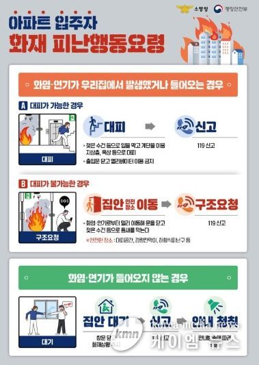 (케이엠뉴스) 파주소방서는 최근 아파트 화재가 잇따라 발생하면서 공동주택 주민들의 안전 의식과 대피요령 숙지가 무엇보다 중요하다는 판단 아래 주민들의 소중한 생명을 지키기 위한 대피요령 홍보 활동에 나선다.