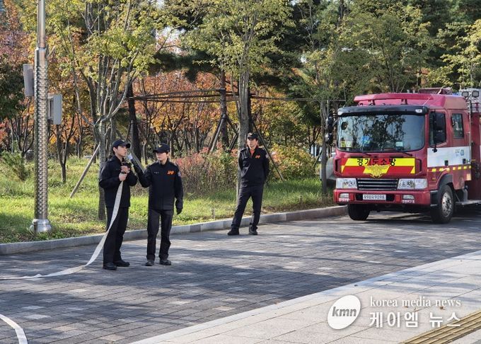 (케이엠뉴스) 경기도교육청이 4일 북부청사에서 의정부소방서 금오119안전센터와 함께 합동 소방훈련을 실시했다.