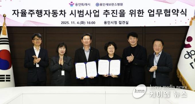 (케이엠뉴스) 용인특례시는 4일 오후 시청 접견실에서 용인세브란스병원과 ‘자율주행 자동차 시범사업’ 추진을 위한 업무협약을 체결했다.