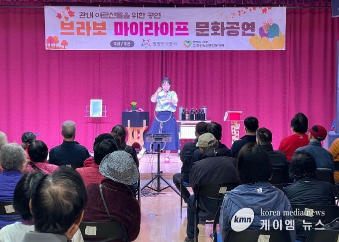 (케이엠뉴스) 광명도시공사는 하안노인종합복지관과의 협업으로 지난 10월 24일과 10월 31일 총 2회차로 관내 어르신 대상 문화공연인 ‘브라보 마이 라이프’를 성공적으로 마쳤다고 밝혔다.