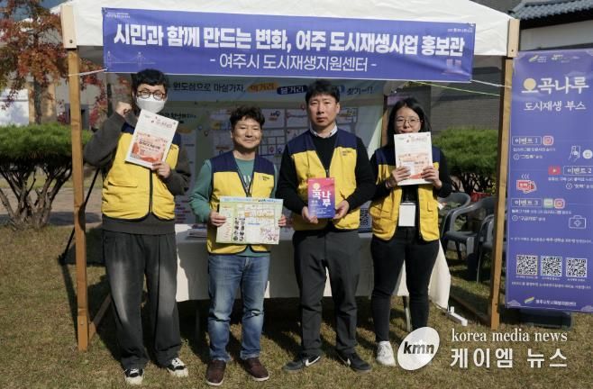 (케이엠뉴스) 여주시 도시재생지원센터는 지난 10월 31일부터 11월 2일까지 3일간 신륵사 관광지 일원에서 성대하게 열린 '2025 여주오곡나루축제'에 참가해, 축제장을 찾은 수많은 시민과 관광객을 대상으로 여주시 도시재생사업을 알리는 홍보 부스를 성공적으로 운영했다고 밝혔다.