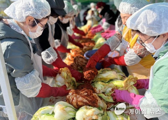 (케이엠뉴스) 고양시여성단체협의회가 5일 주교동 행정복지센터 주차장에서 지역 내 소외계층을 위한 ‘마음을 전하는 사랑의 김장 나눔' 행사를 열고 이웃사랑을 실천했다.