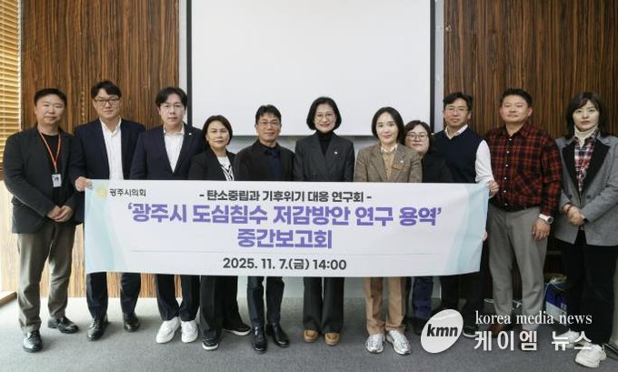 (케이엠뉴스) 광주시의회 의원연구단체인‘탄소중립과 기후위기 대응 연구회’(대표 주임록 의원)는 11월 7일 오후 2시, 시의회 3층 대회의실에서 '광주시 도심침수 저감방안 연구 용역' 중간보고회를 개최했다.