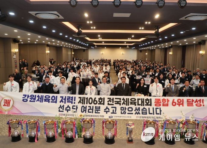강원선수단은 지난 10월 17일부터 23일까지 부산에서 열린 제106회 전국체육대회에서 종합점수 40,042점을 획득, 1999년 이후 26년 만에 종합순위 6위, 메달순위 4위를 기록하며, 전년 대비 2,815점 상승해 2년 연속 성취상을 수상하는 쾌거를 거뒀다.