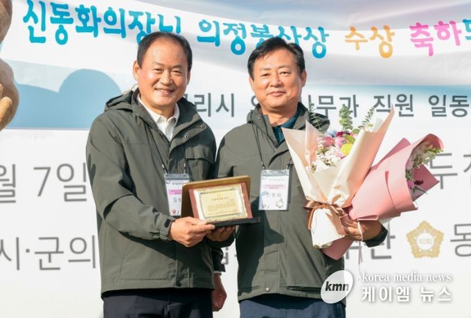 (케이엠뉴스) 구리시의회는 11월 7일 동두천시종합운동장에서 개최된 ‘2025 경기도시군의회의원 한마음체육대회’에서 신동화 의장이 제9대 의회 후반기 의장으로서 추진해 온 의정활동의 공로를 인정받아 ‘지방의정봉사상’을 수상했다고 밝혔다.