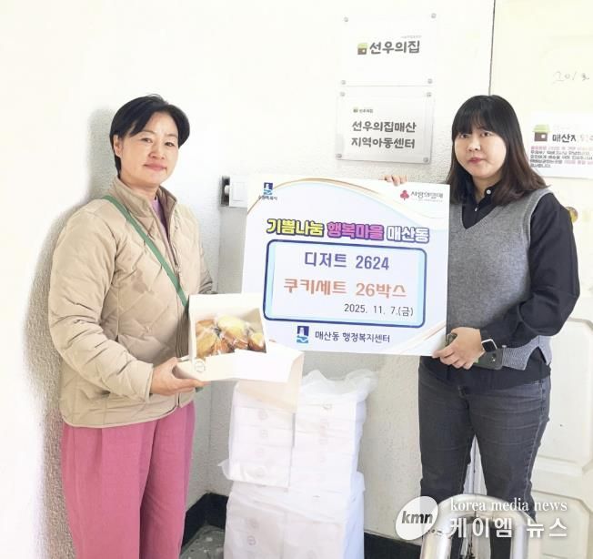 이번 후원은 매산동 지역사회보장협의체 위원이자 ‘디저트 2624’를 운영 중인 안정빈 대표의 재능기부로 마련됐으며, 행정복지센터는 후원받은 쿠키를 선우의집 매산지역아동센터에 전달해, 아이들이 간식 시간에 따뜻한 마음과 함께 달콤한 간식을 즐길 수 있도록 했다.