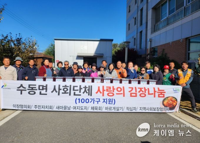 이날 마련된 김치 100통은 수동면 관내 독거노인, 장애인, 복지사각지대에 놓인 저소득층 가정 등에 전달됐다. 특히 각 사회단체별로 회원들이 김장 김치를 직접 전달하며 이웃의 안부를 살폈다.