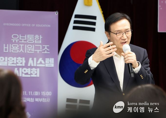 (케이엠뉴스) 경기도교육청이 11일 북부청사에서 양주시청, 한국사회보장정보원을 비롯해 유치원·어린이집 관계자가 참석한 가운데 ‘유보통합 비용지원구조 일원화 시스템’ 시연회를 개최했다.