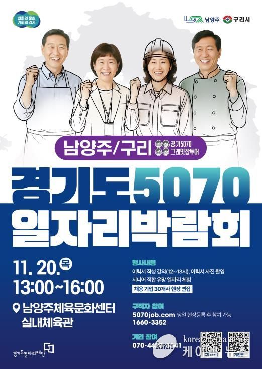 (케이엠뉴스) 경기도와 경기도일자리재단이 11월 20일 남양주체육문화센터에서 ‘경기도 5070 일자리박람회 in 남양주+구리’를 개최한다.