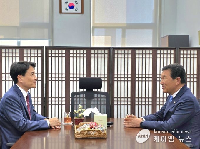 (케이엠뉴스) 김진태 강원특별자치도지사는 11월 12일 국회를 방문해 더불어민주당 소속 신정훈 국회 행안위원장(전남 나주‧화순)을 만나 강원특별법 3차 개정안의 조속한 심사와 통과를 건의했다.
