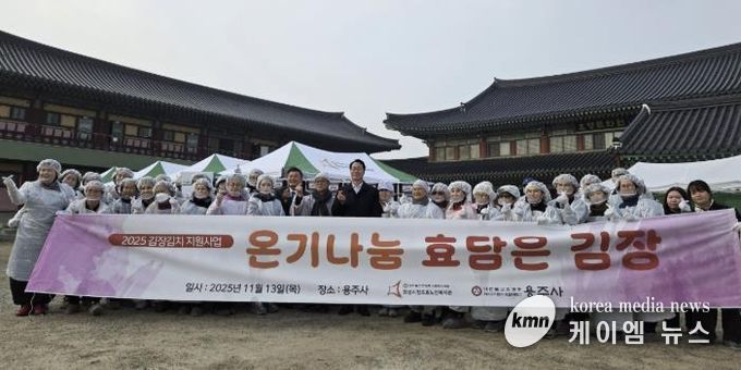 (케이엠뉴스) 화성시 정조효노인복지관이 13일 지역 대표 사찰인 용주사와 함께 ‘용주사와 함께하는 김장행사’를 개최했다.