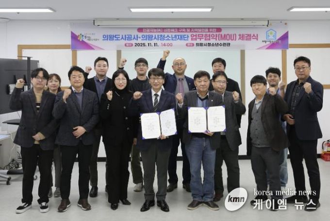 (케이엠뉴스) 의왕도시공사는 11월 11일 의왕시청소년재단과 인공지능 네트워크 구축을 통한 청년 인재 양성 및 지역발전을 위한 업무협약을 체결했다.