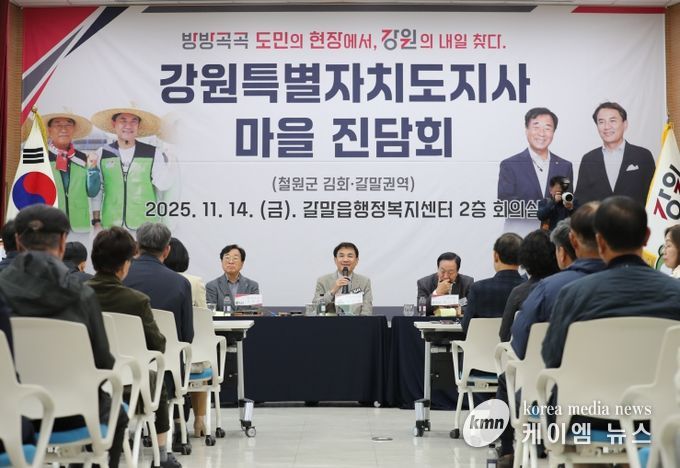 (케이엠뉴스) 김진태 강원특별자치도지사는 '강원특별법' 군사특례를 활용한 첫 권한 행사로 지난 3월 군사규제 개선 성과를 거둔 철원군을 11월 14일 방문해 도지사 ‘마을진담회’(진솔한 +간담회)의 네 번째 자리를 마련했다.