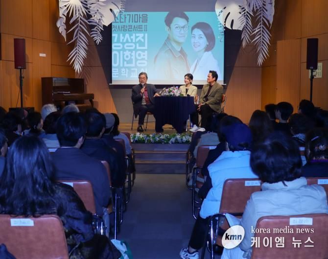 (케이엠뉴스) 배우 강성진과 방송인 이현영 부부가 지난 13일 양평군 황순원문학촌 소나기마을 첫사랑콘서트Ⅱ 문학교실에서 ‘가족이라는 선물’을 주제로 특별 강연을 진행했다. 이번 첫사랑콘서트Ⅱ는 매주 목요일 열리는 한국 문화 예술계 저명인사 초청 강연 프로그램 ‘2025 소나기마을 문학교실’과 공동으로 마련됐다.