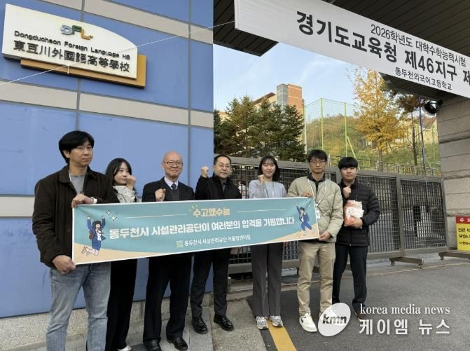 (케이엠뉴스) 동두천시 시설관리공단은 11월 13일 2026학년도 대학수학능력시험을 마치고 시험장을 나오는 수험생들을 격려하기 위해 동두천외국어고등학교 앞에서 ‘수고했수능’ 응원 행사를 진행했다.