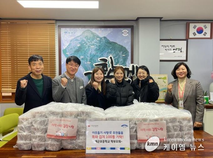 임병희 개군면장은 “개군초등학교 학부모회의 따뜻한 나눔에 감사드린다”며 “기탁해 주신 파김치는 필요한 가구에 잘 전달해 도움이 될 수 있도록 하겠다”고 전했다.