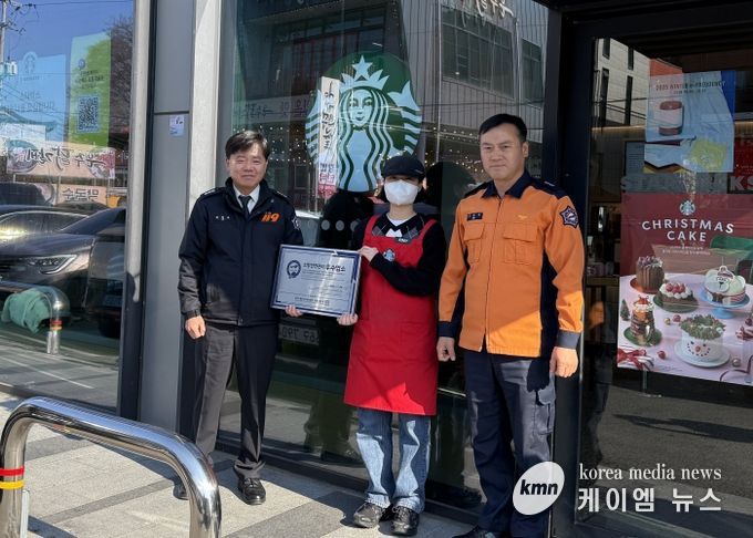 (케이엠뉴스) 가평소방서는 19일 오후 1시 가평읍 소재 스타벅스 남이섬점을 방문하여 ‘다중이용업소 안전관리 우수업소’로 선정하고 인증표지를 전달했다.