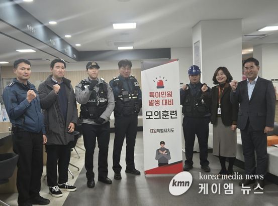 (케이엠뉴스) 강원특별자치도는 지난 11월 18일 오후 5시 30분, 도청 종합민원실에서 청원경찰, 춘천경찰서, 보안업체와 함께 ‘폭언·폭행 등 특이민원 대응 모의훈련’을 실시했다.
