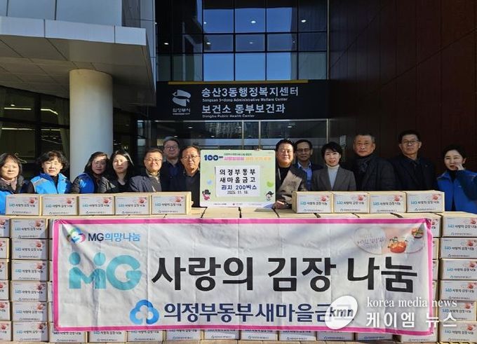 (케이엠뉴스) 의정부시 송산3동행정복지센터는 11월 18일 의정부동부새마을금고가 송산권역의 어려운 이웃을 위한 김장김치 200상자(5kg 단위)를 기탁하며 ‘100일간 사랑릴레이 배턴 잇기’에 동참했다고 밝혔다.
