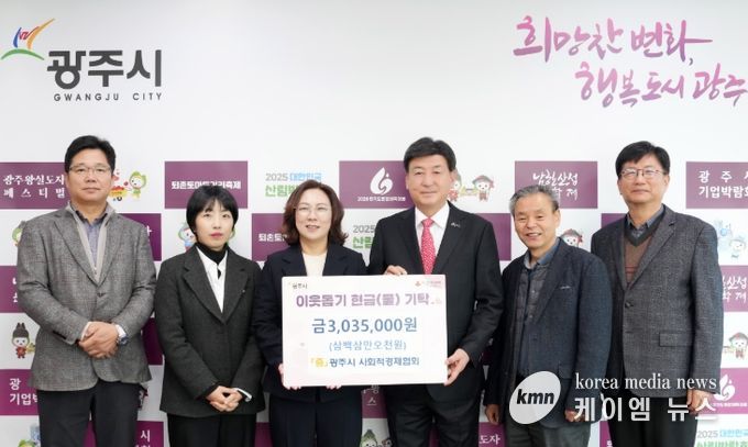 (케이엠뉴스) 광주시 사회적경제협회 소속 사회적경제 기업들이 ‘2025년 광주시 사회적경제 나눔장터’를 통해 마련한 판매 수익금 303만 5천 원을 20일 광주시에 이웃돕기 성금으로 기탁했다.