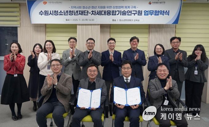 (케이엠뉴스) 수원시청소년청년재단(이사장 최종진)과 차세대융합기술연구원(원장 김연상)은 11월 20일, 청소년·청년의 미래 역량 강화와 성장 지원을 위한 업무협약(MOU)을 체결했다.