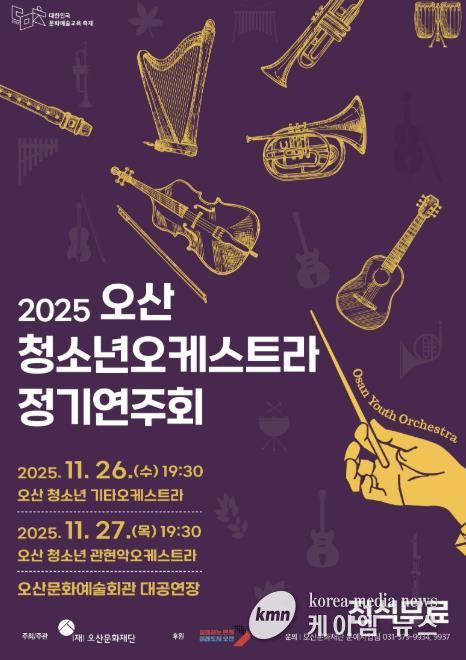 (케이엠뉴스) 오산문화재단이 주최하고 오산시가 후원하는 ‘2025 오산 청소년 오케스트라 정기연주회’가 오는 11월 26일부터 27일까지 오산문화예술회관 대공연장에서 이틀간 개최된다. 공연은 전석 무료로 시민 누구나 관람할 수 있다.