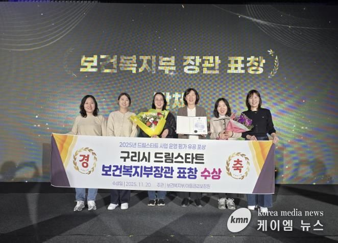 (케이엠뉴스) 구리시는 2025년도 드림스타트 사업 운영평가에서 우수기관으로 선정되어, 지난 20일 평창에서 열린 ‘2025년 드림스타트 사업 보고대회’에서 보건복지부 장관 표창을 받았다고 밝혔다. 이번 수상은 2018년, 2022년에 이은 세 번째 수상이다.