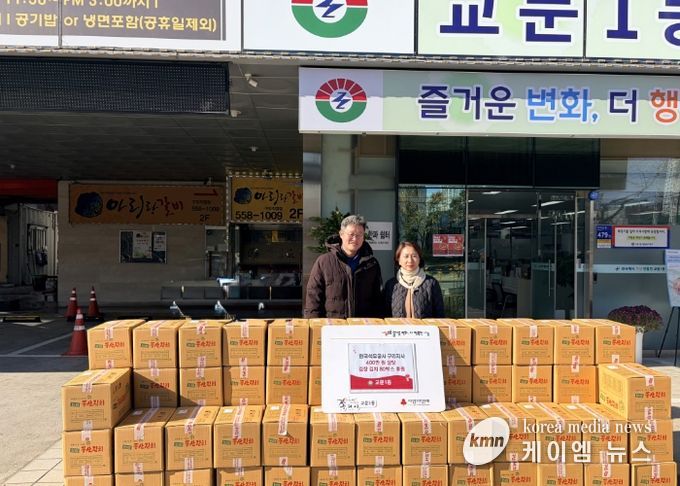 (케이엠뉴스) 구리시 교문1동 행정복지센터는 지난 11월 21일, 한국석유공사 구리지사로부터 김장철을 맞아 취약계층 지원을 위한 400만 원 상당의 김장 김치 80박스를 기탁받아 관내 어려운 이웃들에게 전달했다고 밝혔다.