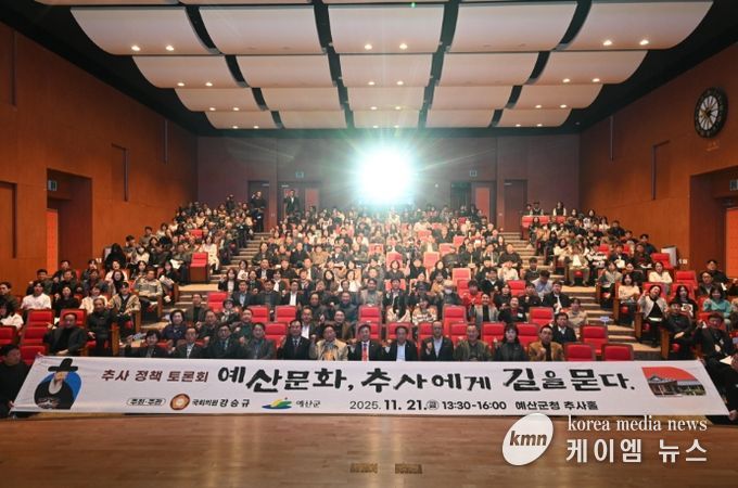 (케이엠뉴스) 예산군은 21일 군청 추사홀에서 개최한 ‘추사 정책토론회, 예산문화, 추사에게 길을 묻다’가 지역 주민과 문화예술인, 학계 관계자 등 300여명이 참석한 가운데 성황리에 개최했다.