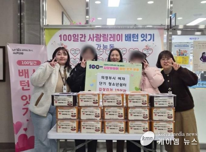 (케이엠뉴스) 의정부시 가능동주민센터는 11월 20일 가능동에 위치한 의정부시여자단기청소년쉼터가 겨울철을 맞아 청소년들이 직접 준비한 김장김치 19상자를 기탁했다고 밝혔다. 전달된 김치는 관내 취약계층 가구에 배부될 예정이다.