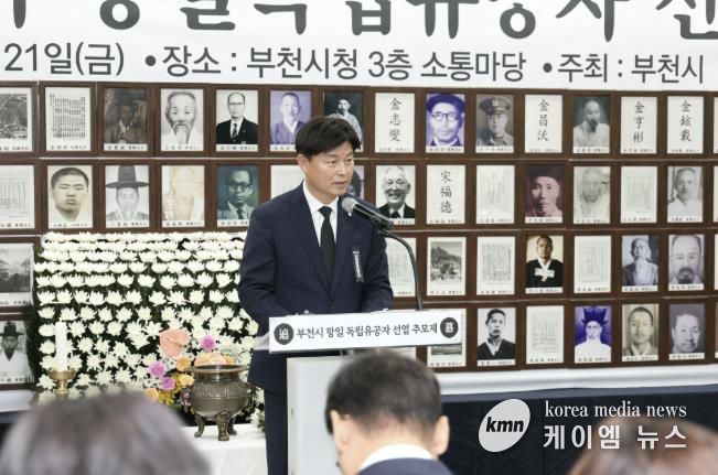 (케이엠뉴스) 부천시는 지난 21일 부천시청 소통마당에서 광복회 부천시지회 주관으로 ‘2025년 부천시 항일독립유공자 선열 추모제’를 엄숙히 거행했다. 이번 행사는 순국선열의 날을 기리고, 항일독립유공자들의 희생정신을 되새기기 위해 마련됐다.