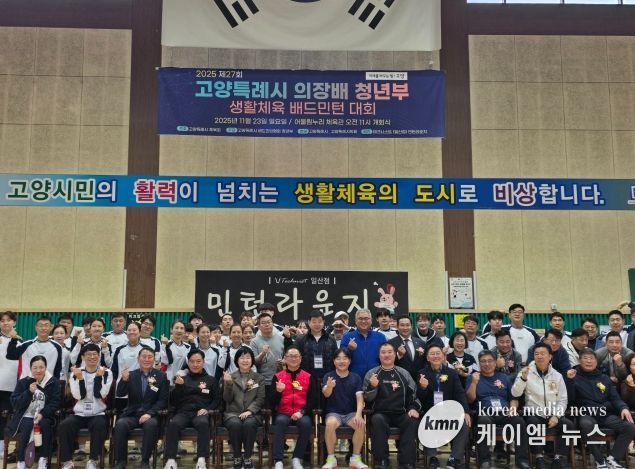 (케이엠뉴스) 제27회 고양특례시의회 의장배 청년부 배드민턴대회가 11월 23일 고양어울림누리 체육관에서 성황리에 마무리됐다. 이번 대회는 고양특례시 체육회가 주최하고 고양특례시 배드민턴협회가 주관한 가운데, 지역 청년부 배드민턴 동호인과 시민들이 한자리에 모여 스포츠를 통한 소통과 건강 증진의 기회를 나누는 자리로 치러졌다.