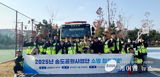 (케이엠뉴스) 인천시설공단 송도공원사업단은 지난 20일 송도 글로벌파크 4지구 공원 내에서 송도소방서(미래119안전센터)와 소방 합동훈련을 실시했다.