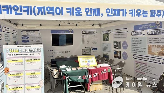 (케이엠뉴스) 파주시는 지난 22일 대교미디어센터에서 개최된 '2025 파주 꿈함성 공유학교 성장나눔 발표회’에서 교육발전특구 사례를 발표하고 홍보 공간을 운영해 학생·학부모·교직원 등 교육공동체의 높은 관심과 참여를 이끌어냈다고 밝혔다.