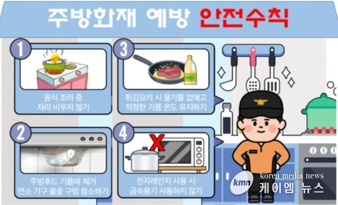 (케이엠뉴스) 홍성소방서는 최근 기온 하강과 함께 외식 이용이 증가하면서 음식점 주방에서의 화재 발생 위험이 높아지고 있어, 업주 및 종사자들에게 주방 안전수칙 준수를 당부했다.