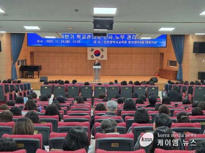 (케이엠뉴스) 인천광역시교육청은 24일 정보센터 4층 대회의실에서 공립 각급학교 행정실장 500여 명을 대상으로 ‘2025년도 하반기 학교관리자 인사‧노무 관리 연수’를 실시했다.