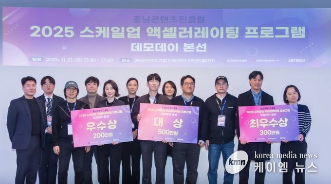 (케이엠뉴스) 충남콘텐츠진흥원은 지난 21일 충남 아산시 충남콘텐츠기업지원센터에서 ‘2025 스케일업 액셀러레이팅’ 데모데이 본선을 개최하고, 최종 우수기업 3개사를 선정했다고 밝혔다.