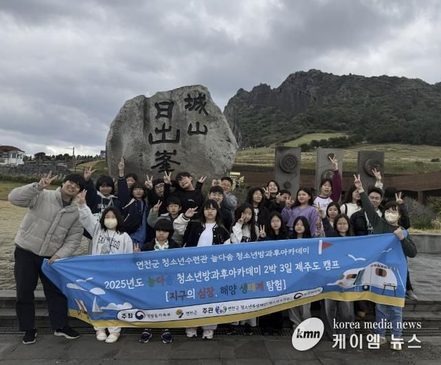 (케이엠뉴스) (재)연천군청소년육성재단(청소년수련관 늘다솜 청소년방과후아카데미)은 지난 11월 19일부터 21일까지 제주도 일원에서 2박 3일간 ‘지구의 심장, 해양 생태계 탐험 캠프’를 안전하게 마쳤다고 밝혔다. 이번 캠프에는 늘다솜 청소년방과후아카데미 소속 청소년 23명과 지도자 3명 등 총 26명이 참여했다.