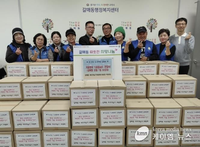 (케이엠뉴스) 구리시는 지난 24일 갈매동 행정복지센터에서 갈매동 바르게살기위원회가 관내 한파 취약계층을 위한 식료품 세트를 갈매동 행정복지센터에 전달하여 ‘겨울맞이 식료품 세트 전달식’을 진행했다고 밝혔다.