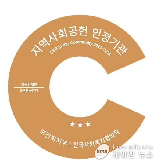 (케이엠뉴스) 강원인재원이 보건복지부와 한국사회복지협의회가 공동으로 주관하는 ‘2025년 지역사회공헌 인정제’ 심사에서 3년 연속 인증 및 최고등급인 에스(S) 등급을 달성했다.