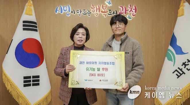 (케이엠뉴스) 과천시는 과천 바로마켓 자치협동조합에서 지난 26일 어려운 이웃들을 위해 사용해 달라며 유기농 쌀 5kg 80포를 기부했다고 밝혔다.